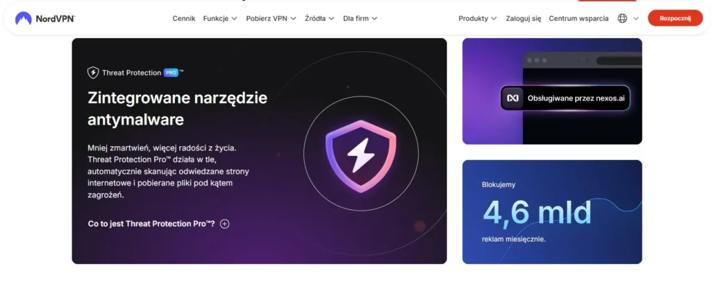 Chociaż NordVPN jest znany przede wszystkim jako czołowy dostawca usług VPN, jego funkcja Threat Protection zasługuje na miejsce w naszym porównaniu. Nie jest to pełnoprawny antywirus w tradycyjnym sensie, ale raczej zaawansowane narzędzie bezpieczeństwa, które jest częścią subskrypcji NordVPN i doskonale uzupełnia istniejącą ochronę.