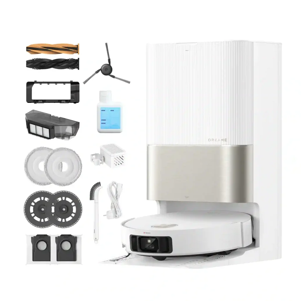Dla właścicieli zwierząt kluczowa jest wysoka moc ssania oraz specjalne szczotki, które nie plączą sierści. Modele takie jak Dreame X50 Ultra (z podwójną szczotką HyperStream™) czy Roborock S8 MaxV Ultra (z trybem dla zwierząt) są doskonałym wyborem, ponieważ skutecznie zbierają sierść i są zaprojektowane z myślą o domach z czworonogami.